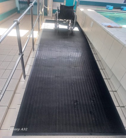 Trolleys and wheelchairs can move over the mat easily without slipping.